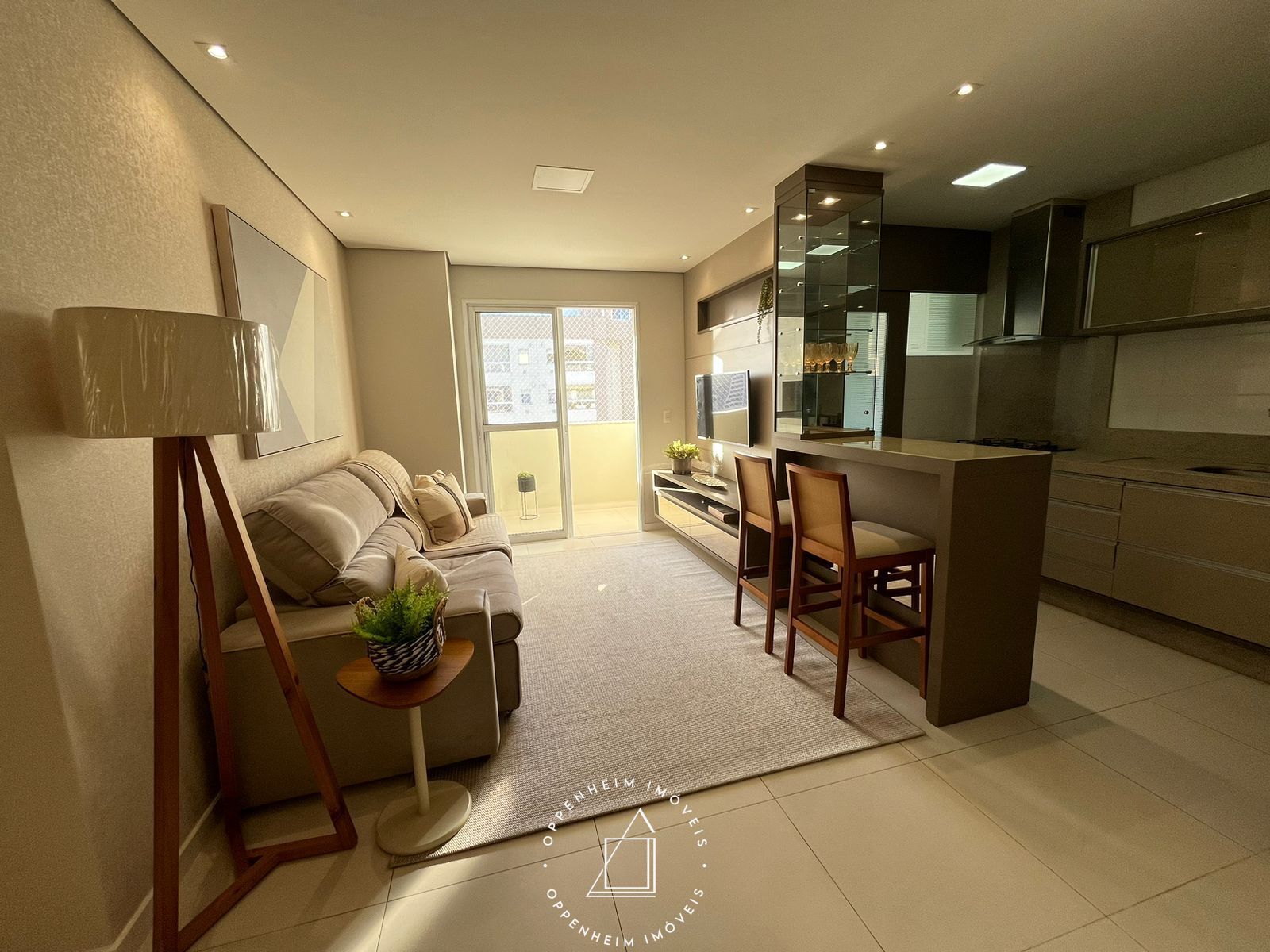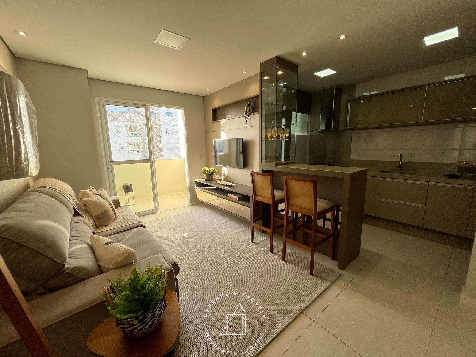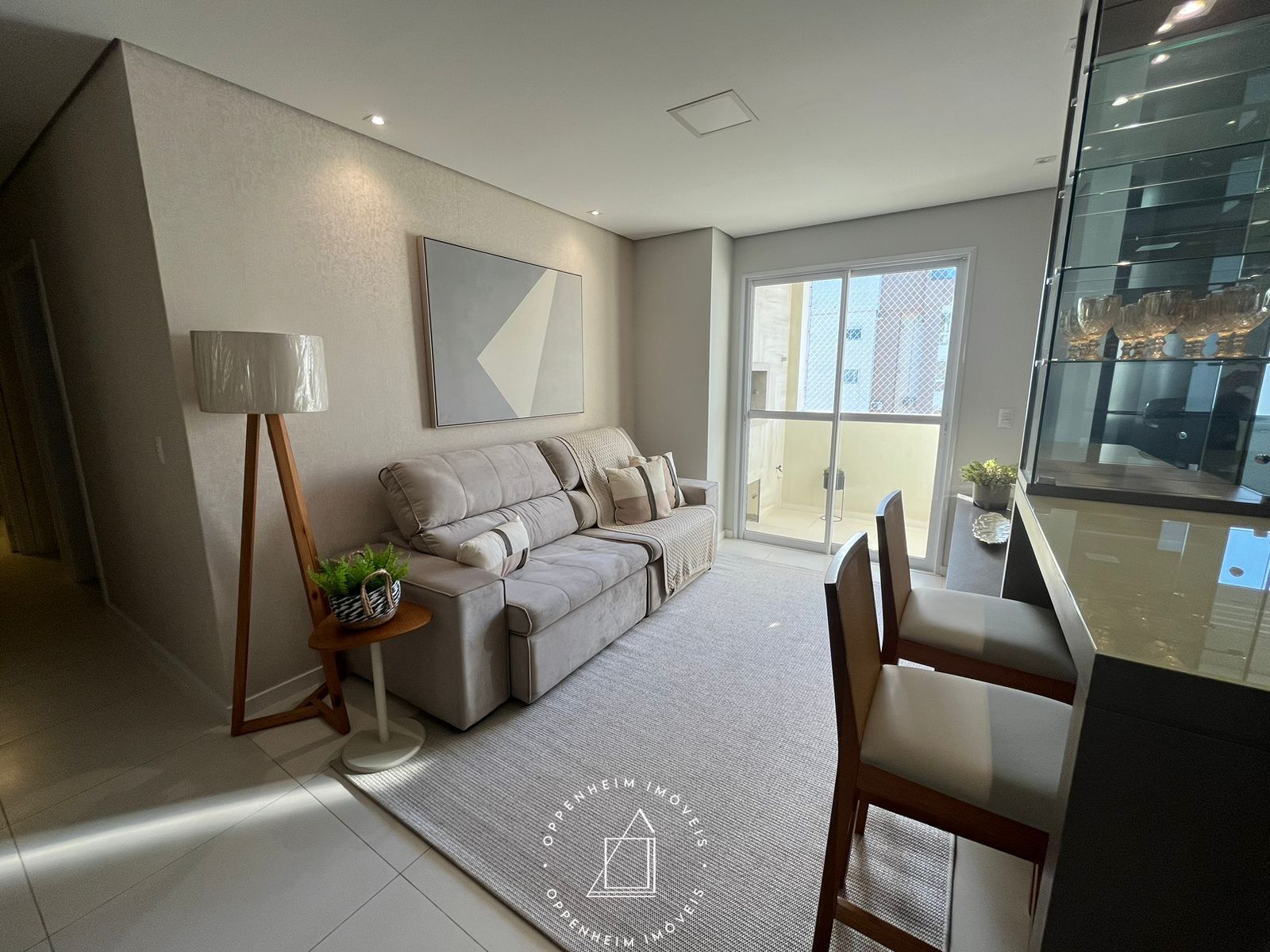 Um apartamento com 3 dormitórios sendo 1 suíte, é um convite ao bom gosto, destacando-se pelo excelente acabamento, incluindo elegantes revestimentos com papel de parede. A cozinha gourmet está equipada com fogão elétrico, forno elétrico de embutir, micro-ondas e geladeira. Desfrute ainda de aquecimento a gás, teto todo rebaixado em gesso e uma aconchegante sacada com churrasqueira a carvão, perfeita para seus momentos de lazer.