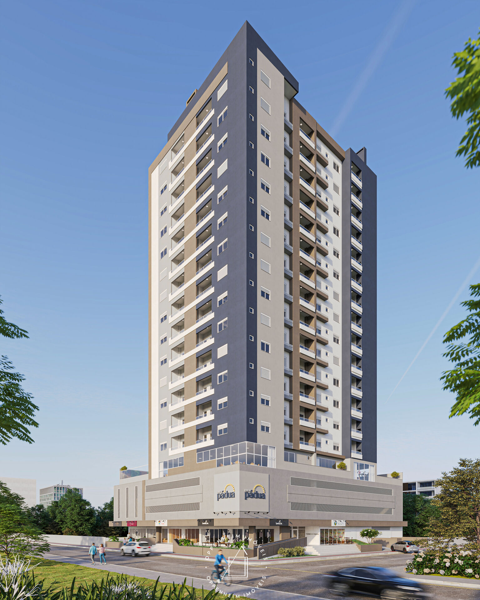 O Torre Di Pádua conta com 18 andares: sendo 3 deles de vagas de garagem e 14 andares de apartamentos