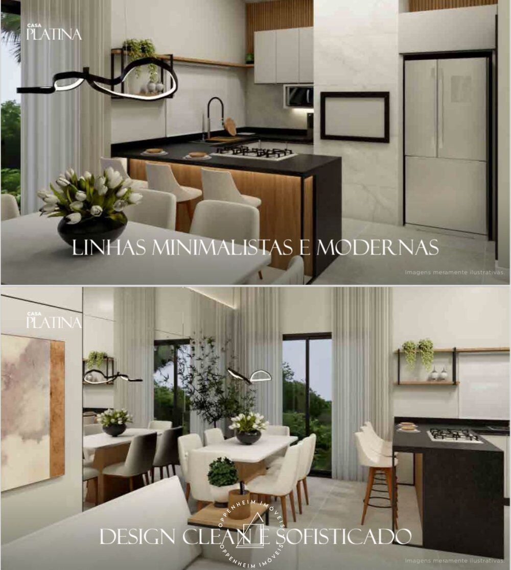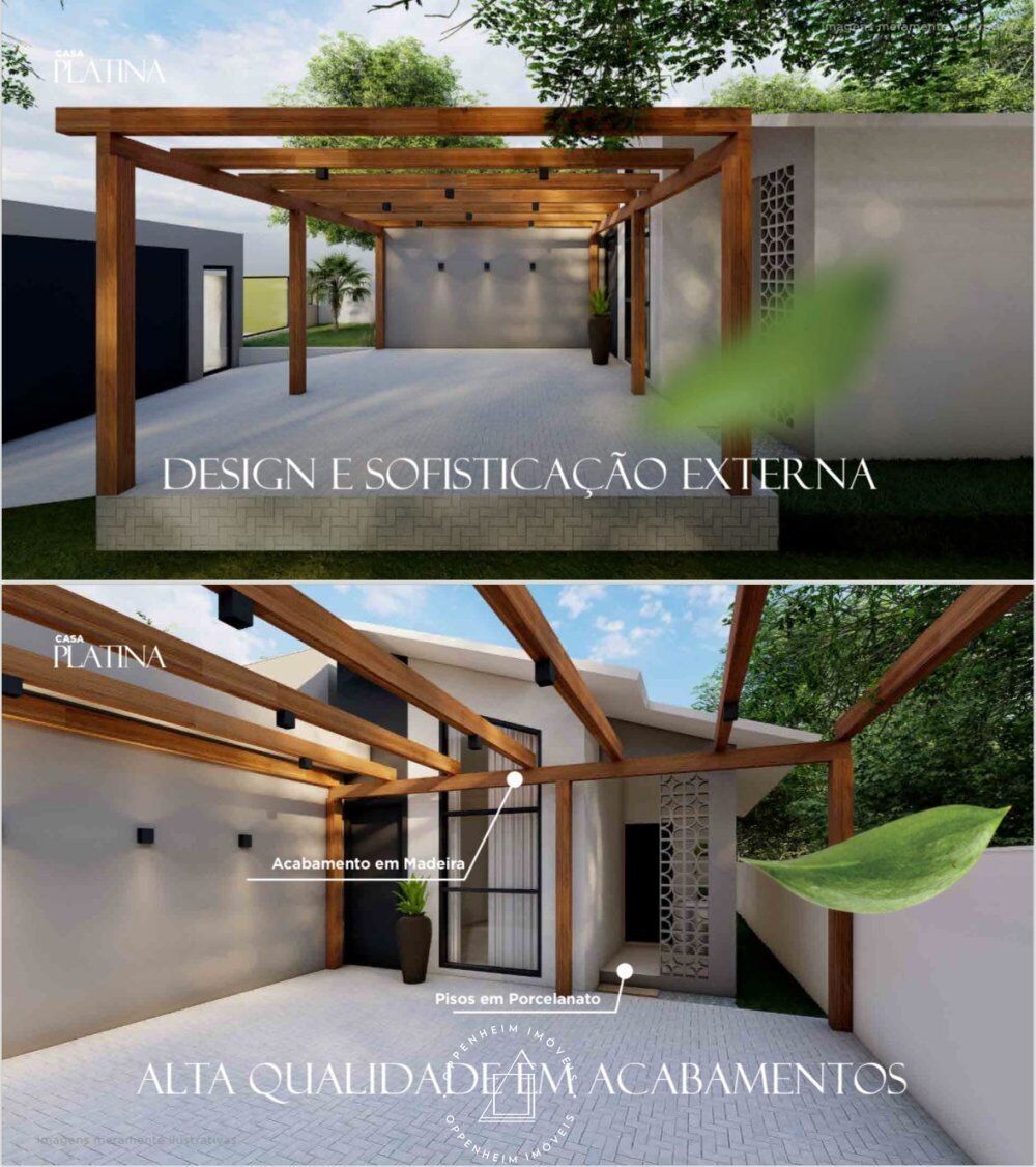 Possui uma suíte e dois quartos, ideais para família ou hóspedes. A sala e cozinha são integradas, criando um ambiente amplo e iluminado. A área de serviço é funcional e discreta. As duas garagens contam com acabamento sofisticado em perolado de madeira. A área externa livre de 143,60m² oferece espaço para personalização.